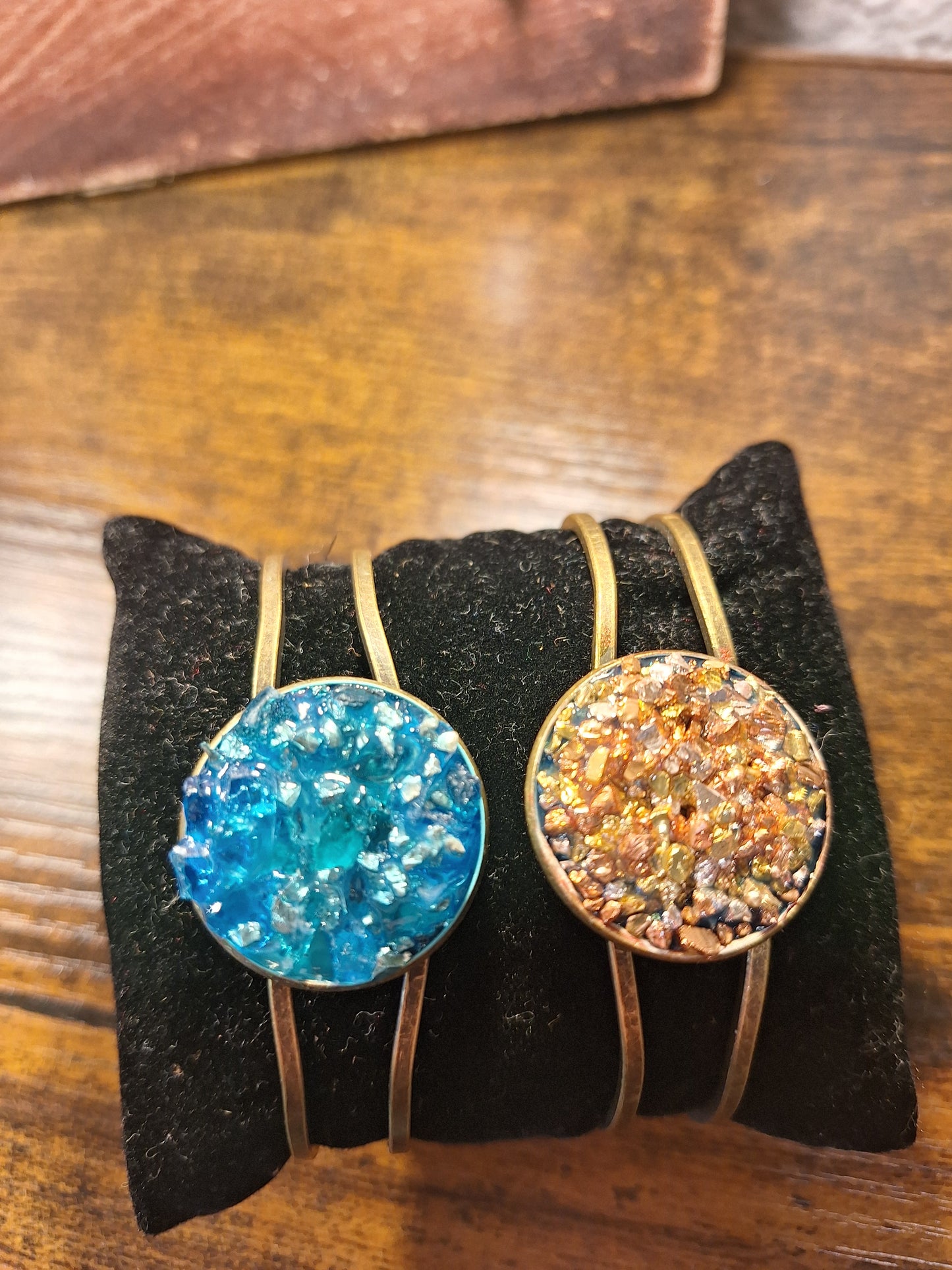 Swirl Art Durzi Style Crushed Glass Cuff Bracelet