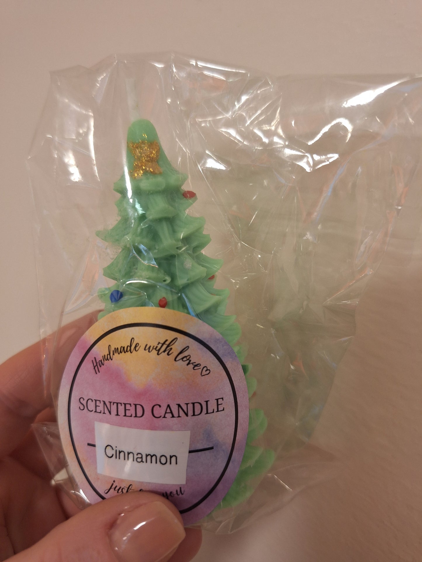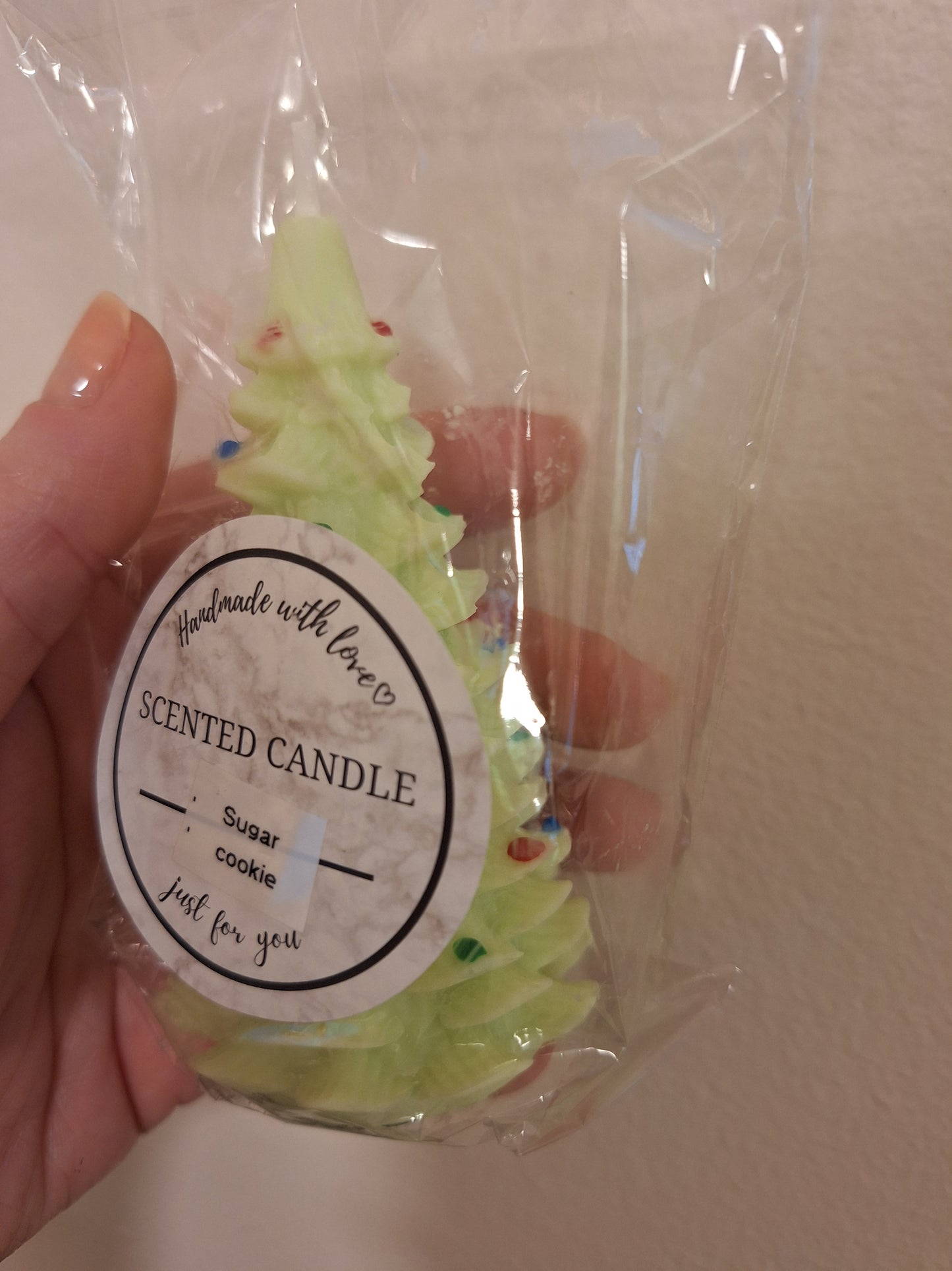 Get festive with these handmade, love-filled candles that can be used as a charming table accent or lit up for a cozy evening. In the shape of a 3 1/4” tall Christmas tree, they're sure to add a touch of holiday cheer to any room.