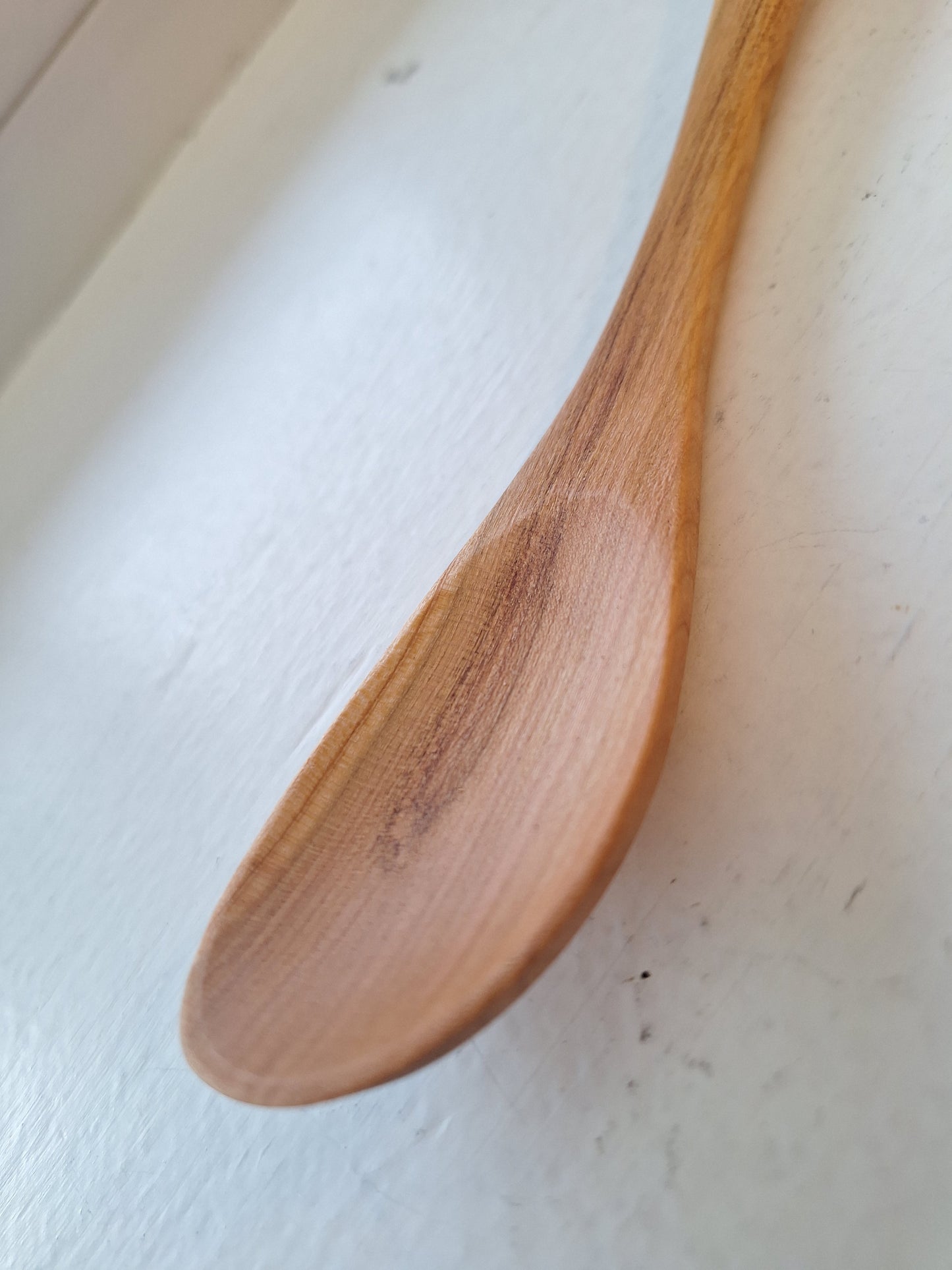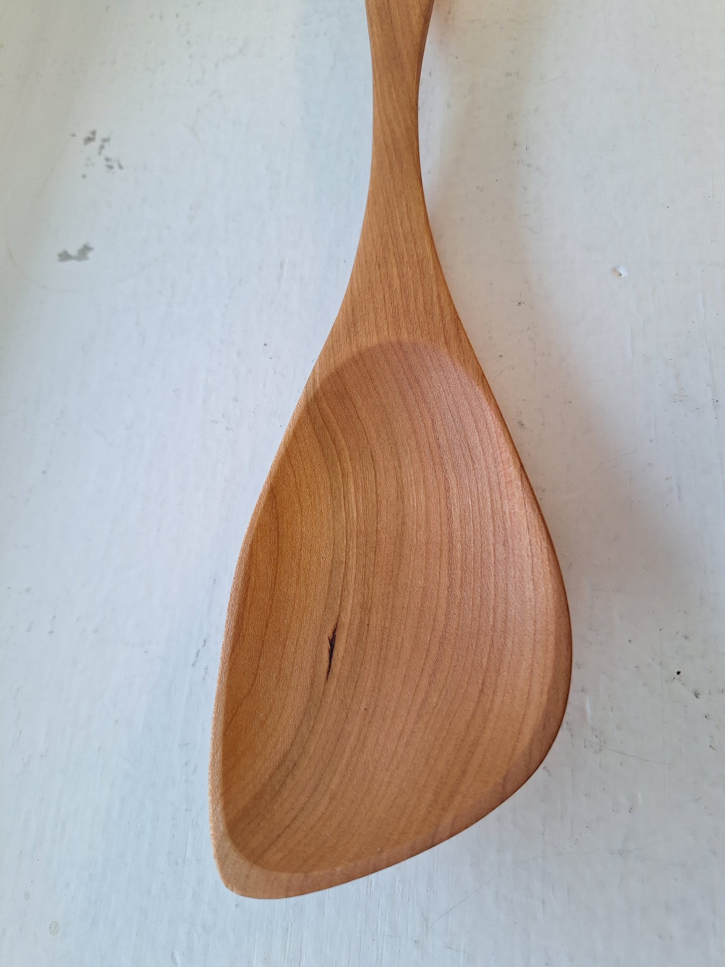 This wooden spoon is handcrafted from fallen hardwoods by Leaning Locust and is great for cooking and serving.