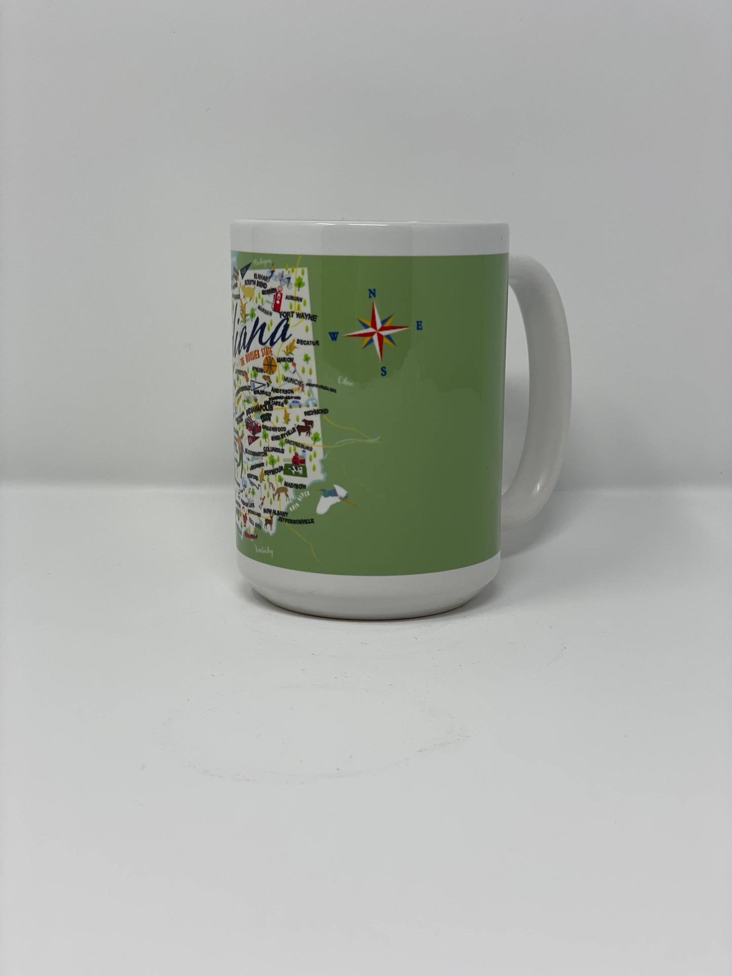 Sip your morning brew from this charming 15-oz. ceramic mug showcasing Galleyware's signature whimsical Indiana design. The durable ceramic construction handles daily use with ease—pop it in the microwave or top shelf of your dishwasher without worry. Featuring vibrant artwork against a crisp white backdrop, this 5" X 4" X 3.5" mug brings a playful touch to your kitchen. Proudly decorated in the Zionsville, IN, it's the perfect way to celebrate your Hoosier spirit with every cup.